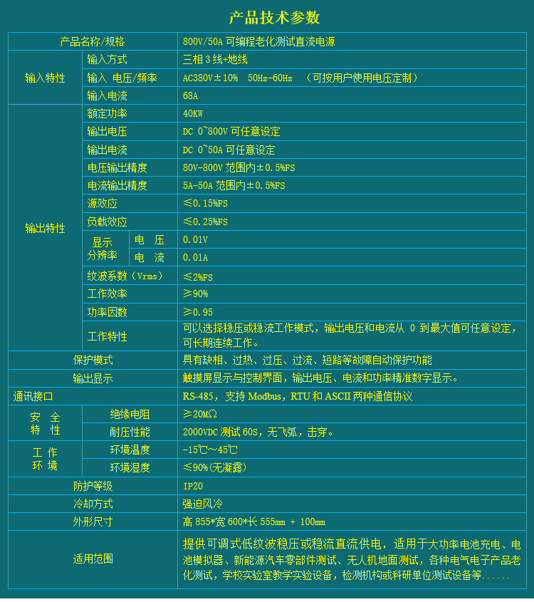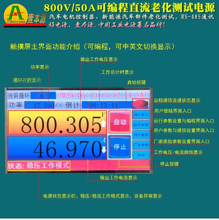 800V/50A大功率高壓程控直流電源 電機(jī)控制器老化測試直流電源